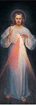 Am 22. Februar 1931 offenbarte sich der Herr Jesus der Schwester Faustina in der Klosterzelle in Plock (Polen) und ließ sie ein Bild malen nach dem Vorbild, das sie in einer Vision bekamm.